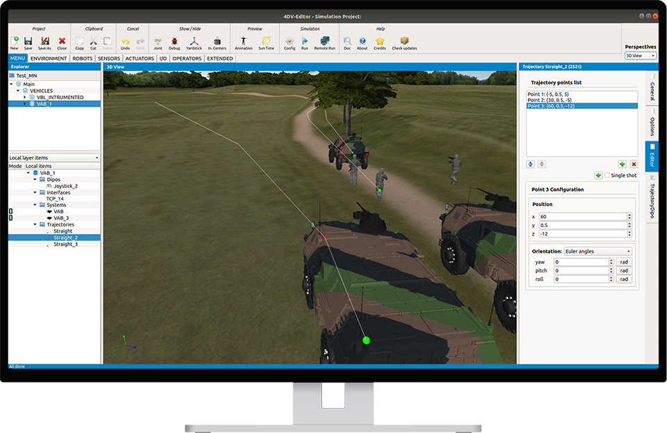 La préparation des scénarios avec 4DV-EDITOR est réalisée grâce à l’utilisation d’une interface pensée et développée pour simplifier la maîtrise de l’outil.