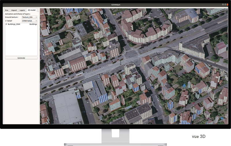 L’environnement peut être modifié par l’utilisateur, grâce à l’ajout de bâtiments ou leur modification géométrique. Il est ensuite possible de l’utiliser comme donnée d’entrée dans les scénarios.